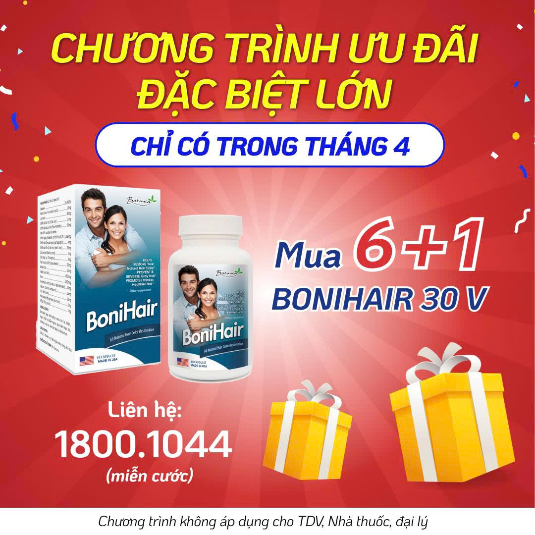 BoniHair - Sản phẩm của Mỹ, là sản phẩm có tác dụng 2 trong 1 tức là dành cho người bị rụng tóc và bạc tóc nhờ những thành phần thiên nhiên ưu việt sau: