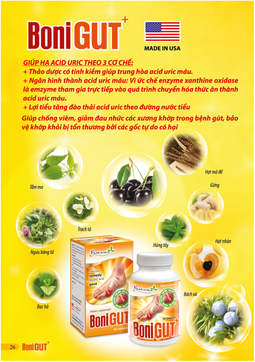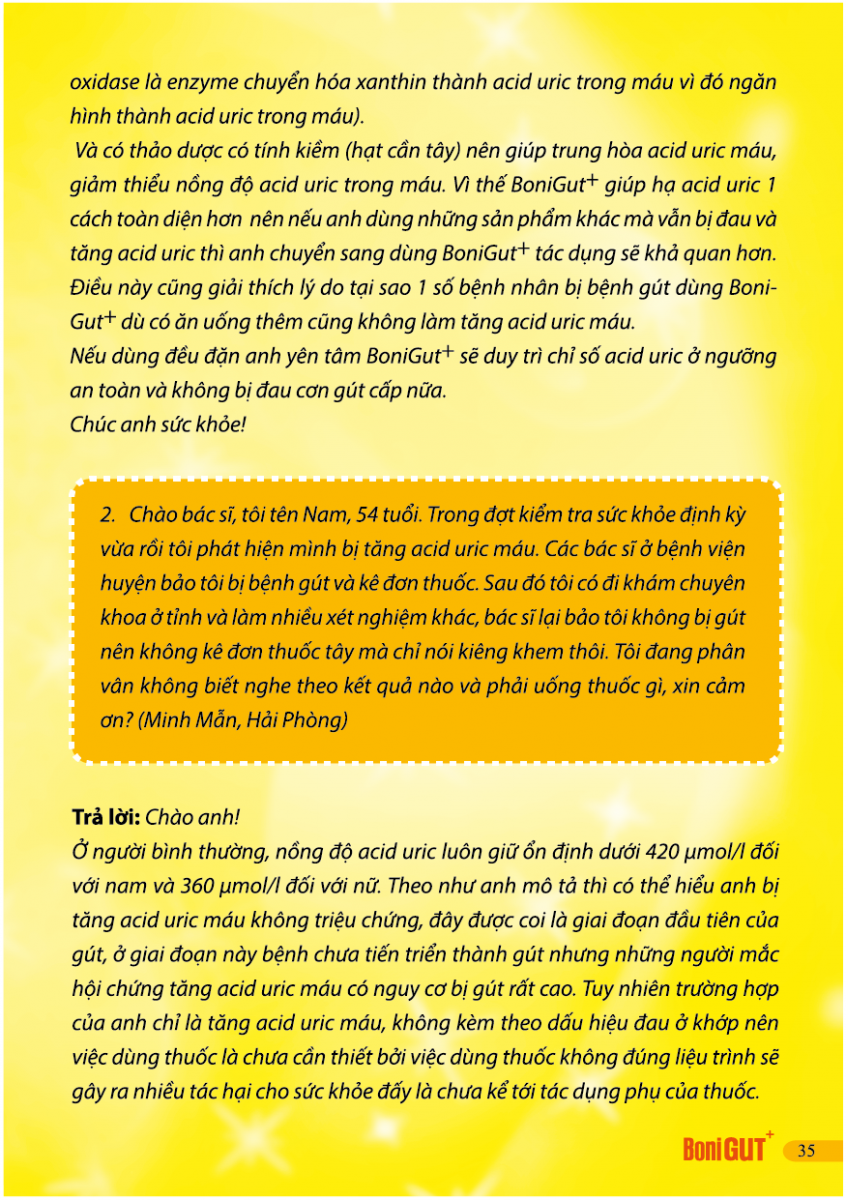 Hỏi: Tôi chỉ bị tăng a.cid u.ric thì có uống được BoniGut hay không?