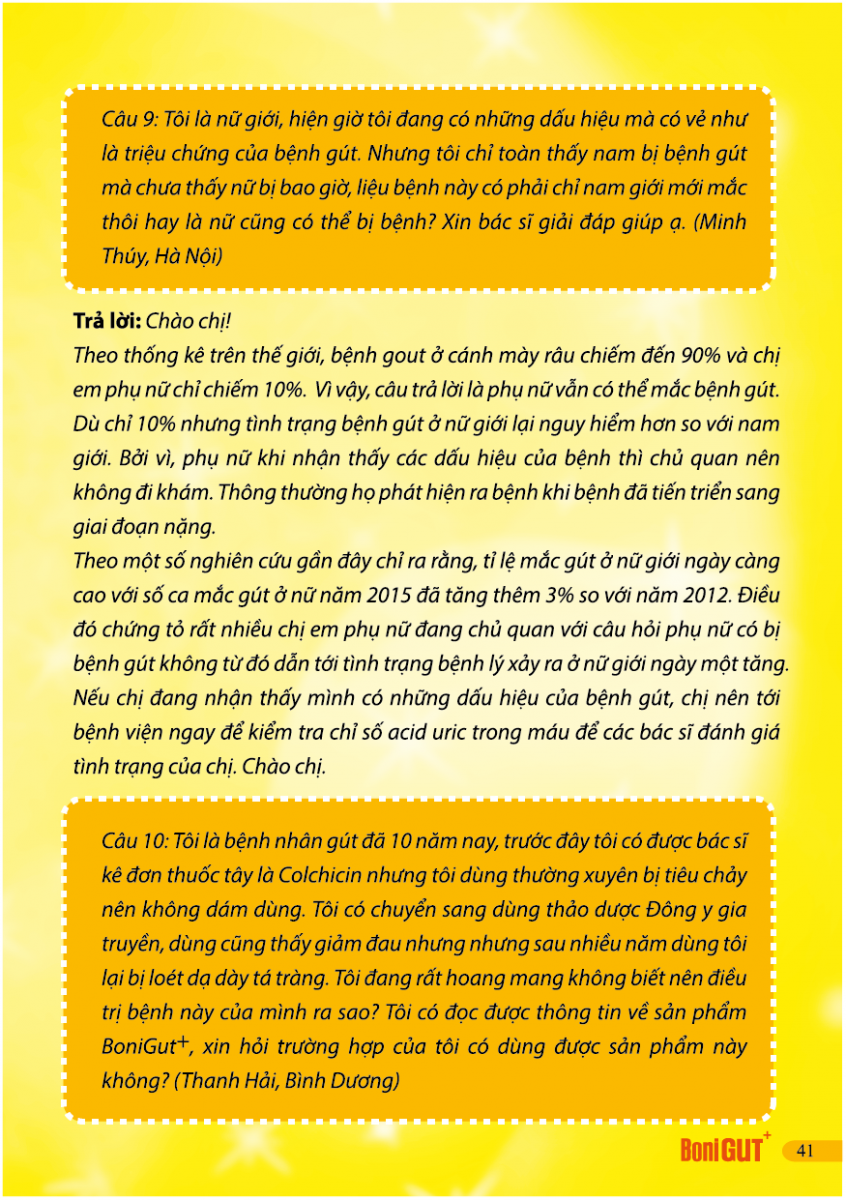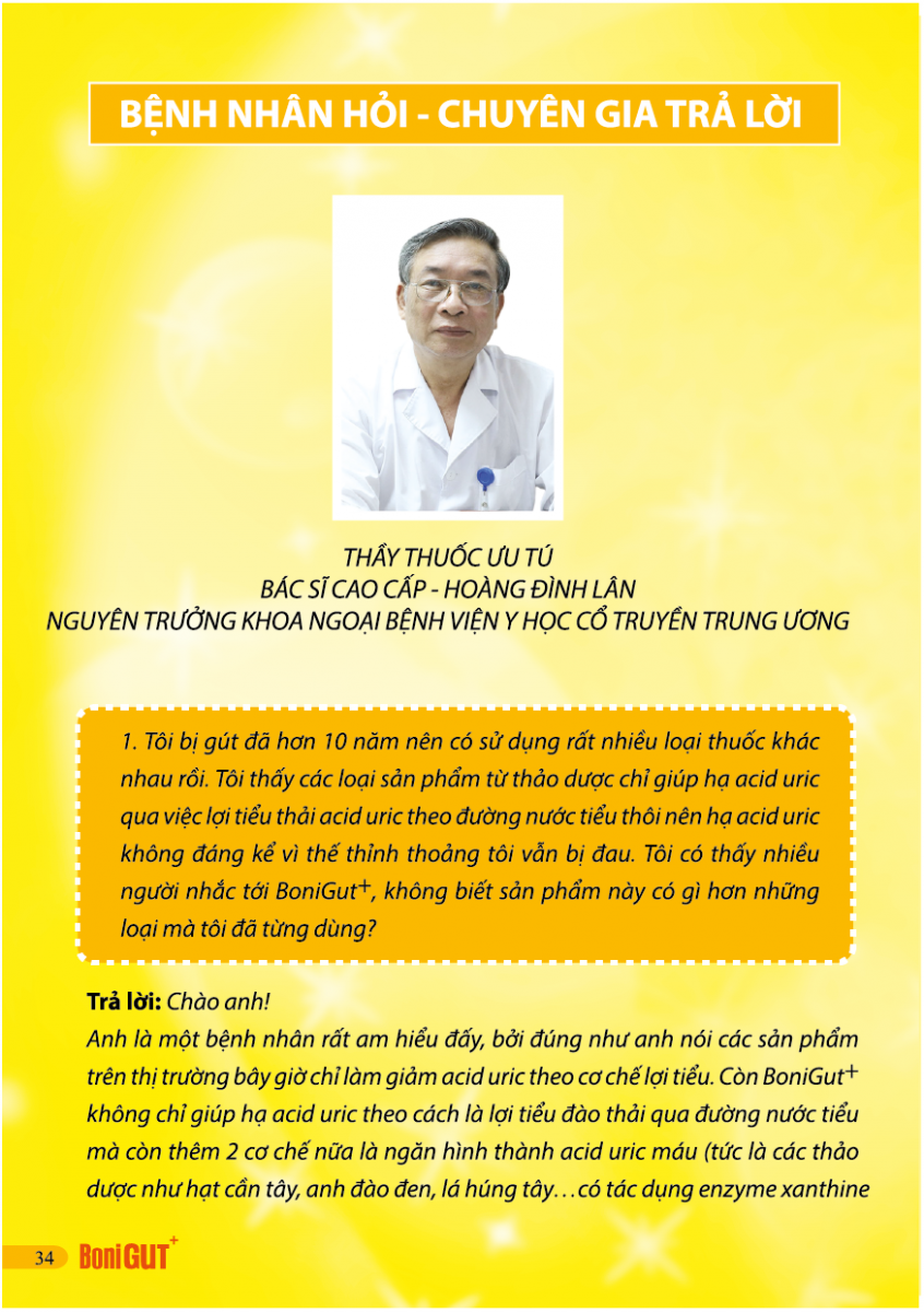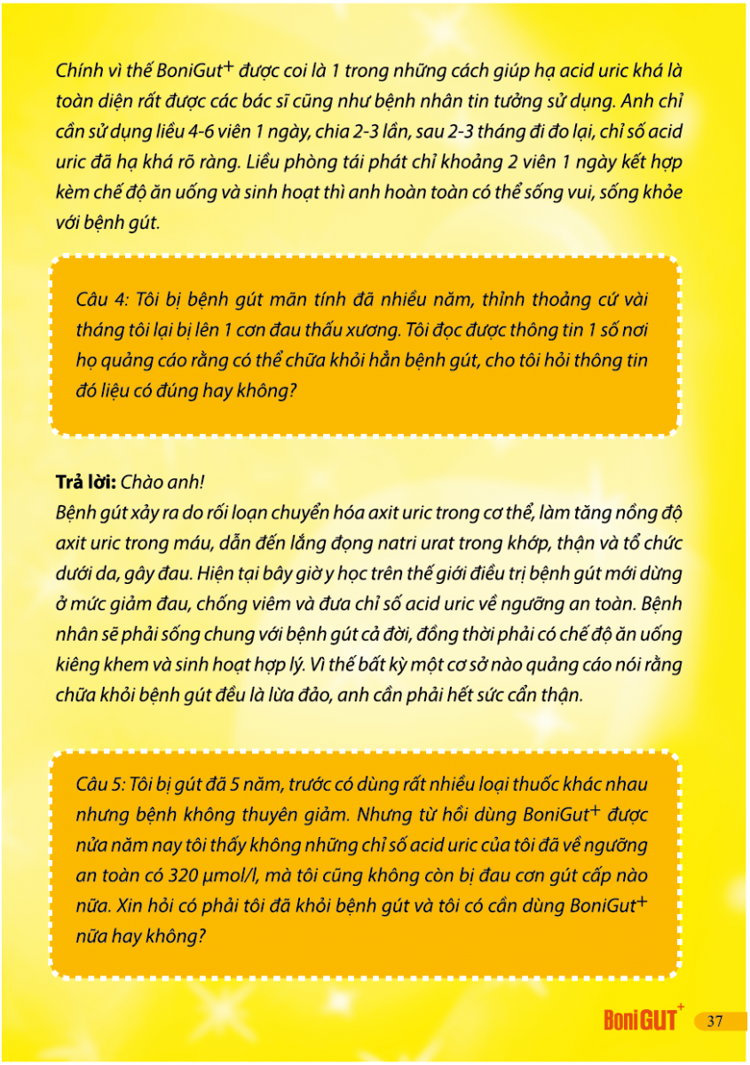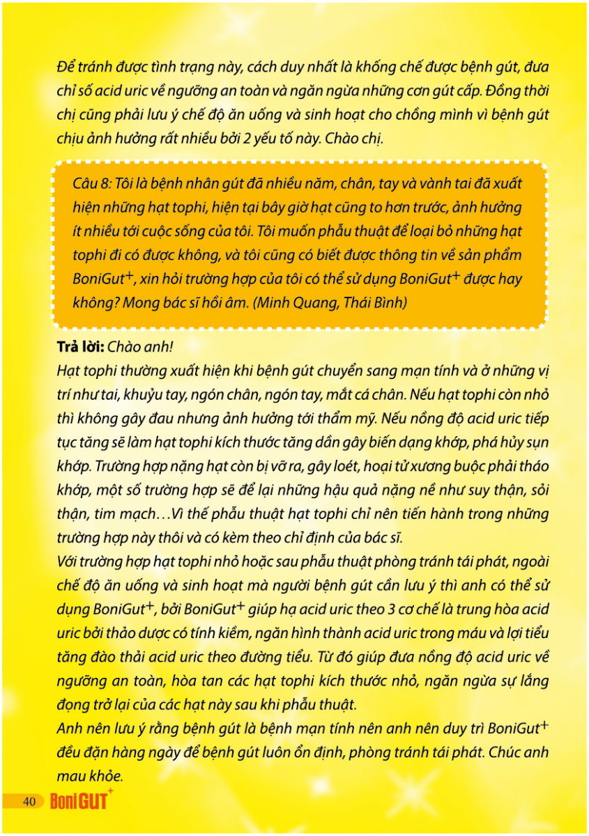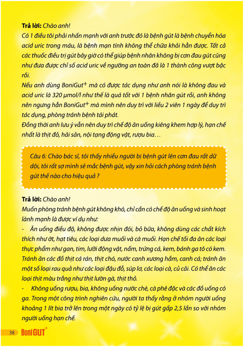Hỏi: Dùng BoniGut có khỏi được hẳn bệnh Gút không bạn?