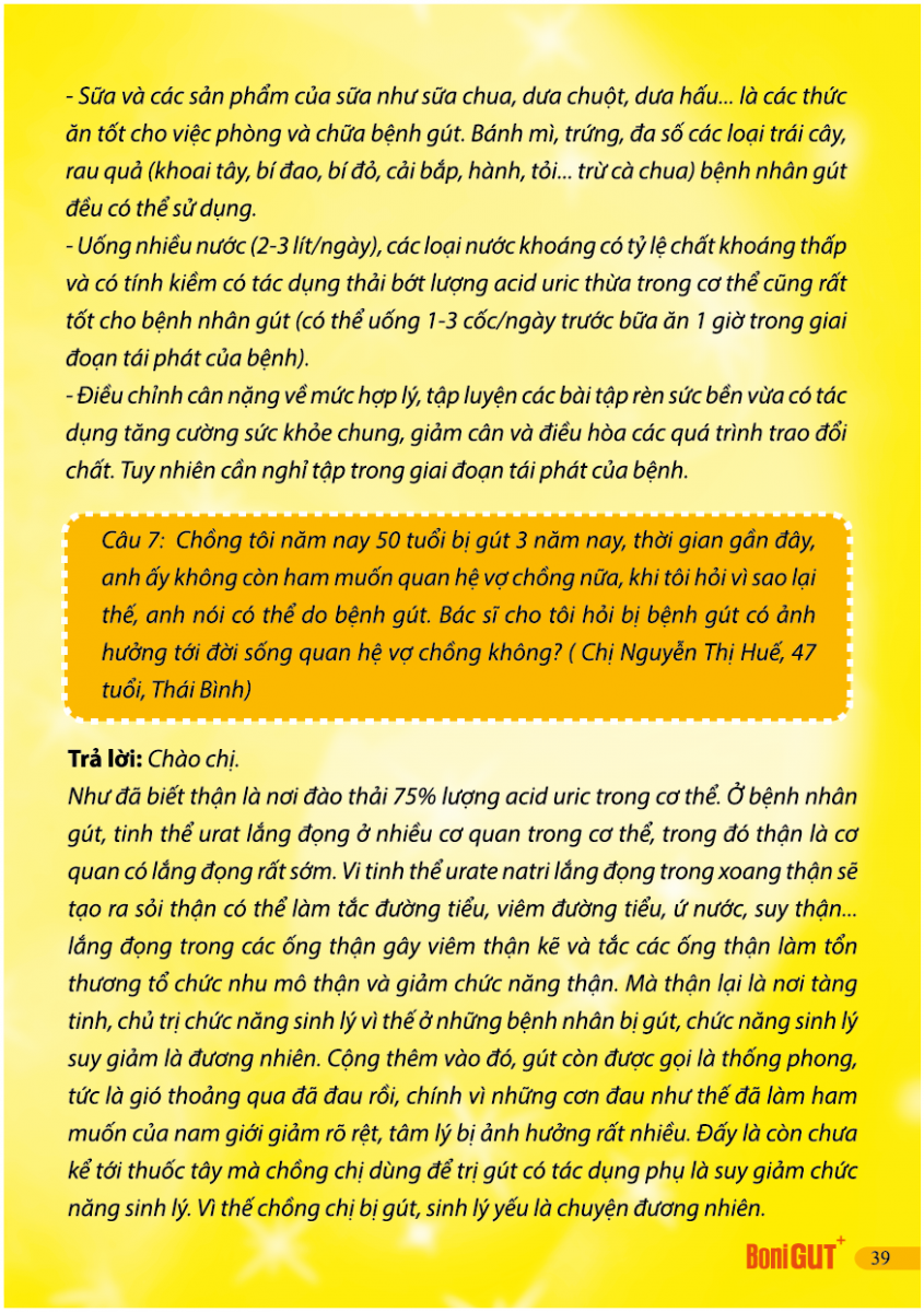 Hỏi: Bệnh Gút có ảnh hưởng đến sinh lý nam không ?