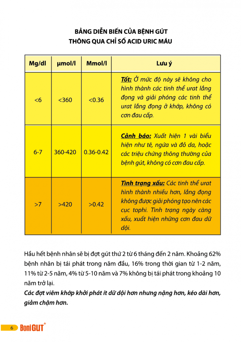Hỏi: A.cid u.ric máu lên 560 µmol/l, 2-3 tuần lại lên 1 cơn đau dùng BoniGut có tác dụng không?