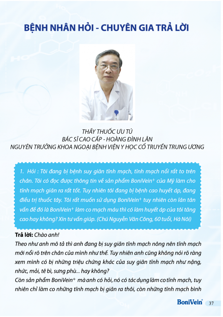 Hỏi: Suy giãn tĩnh mạch kèm bệnh cao huyết áp có dùng được Bonivein không?