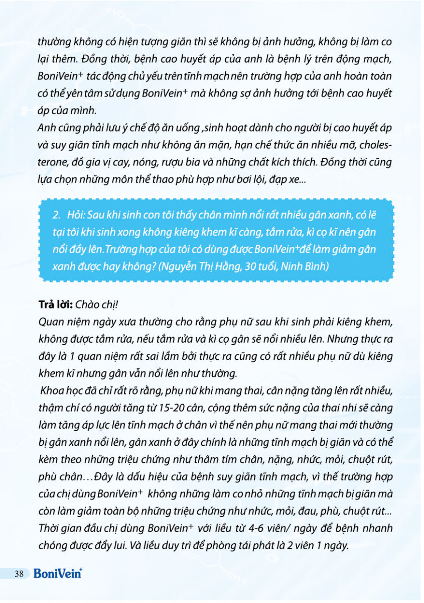 Hỏi: Bị nổi nhiều gân xanh sau sinh dùng Bonivein có đươc không?