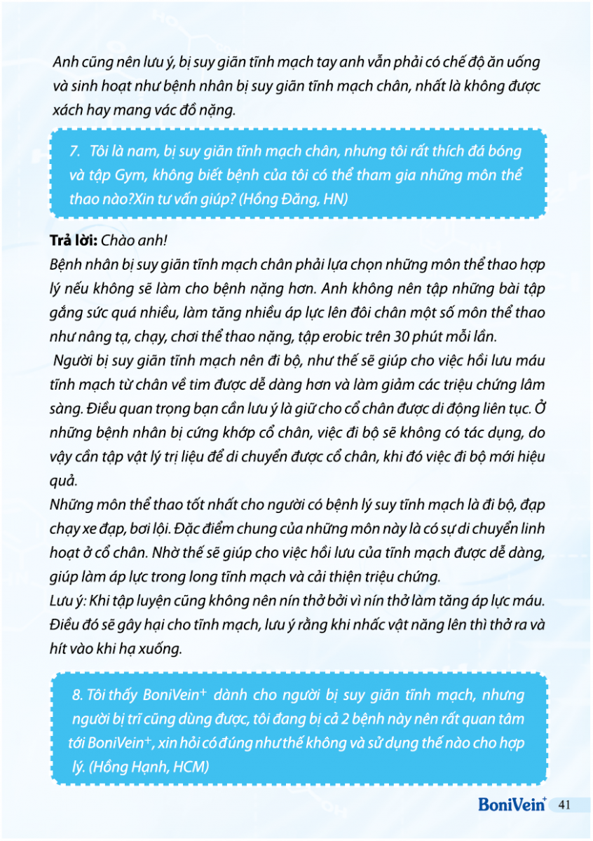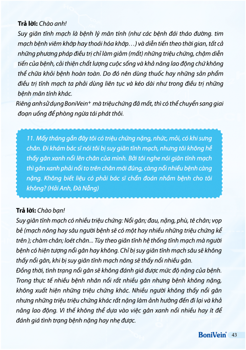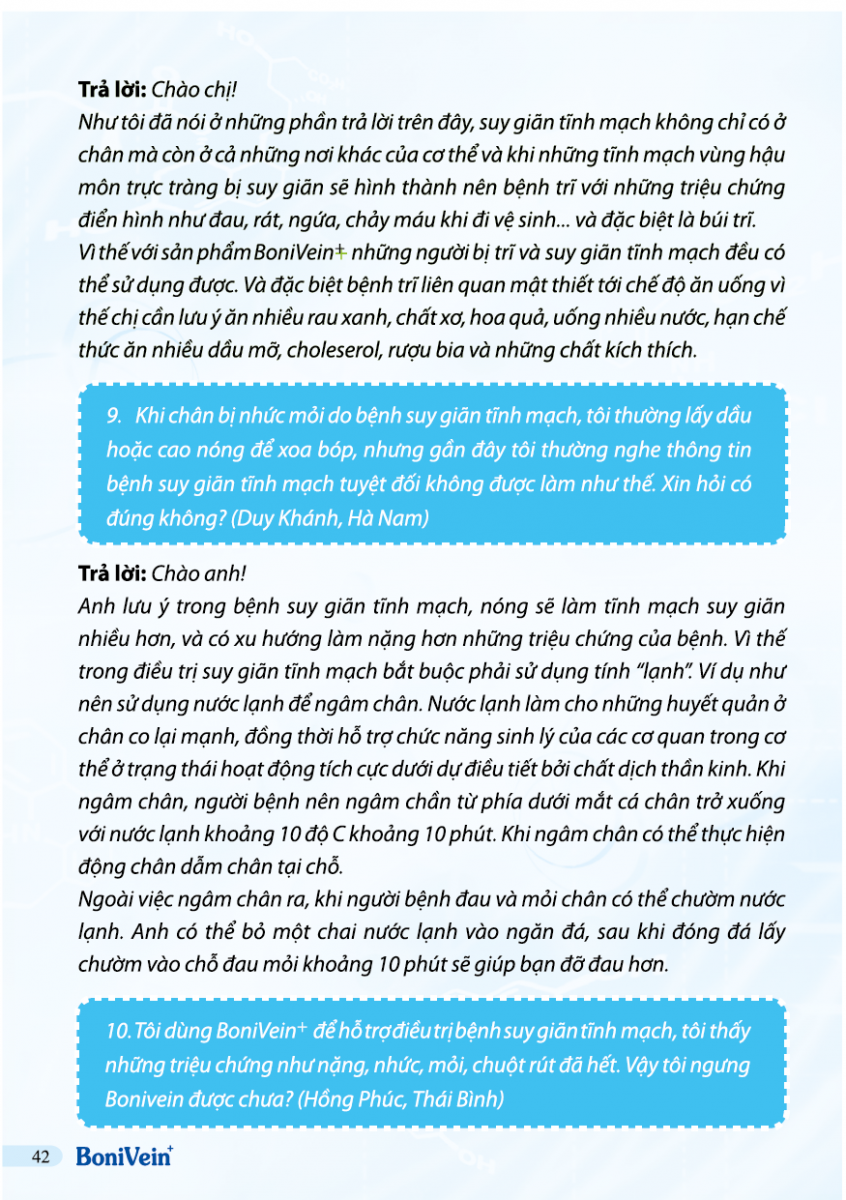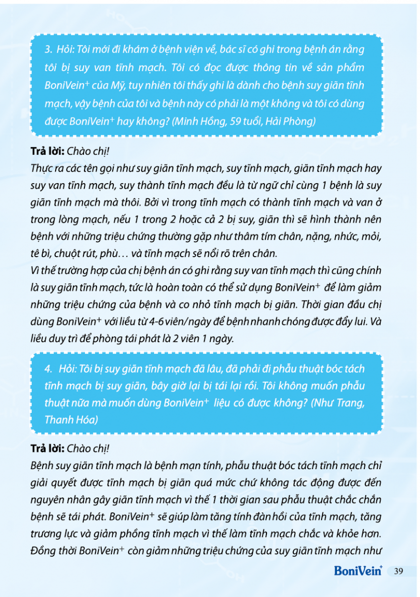 Hỏi: Tôi bị suy giãn tĩnh mạch sâu, có dùng được BoniVein không?