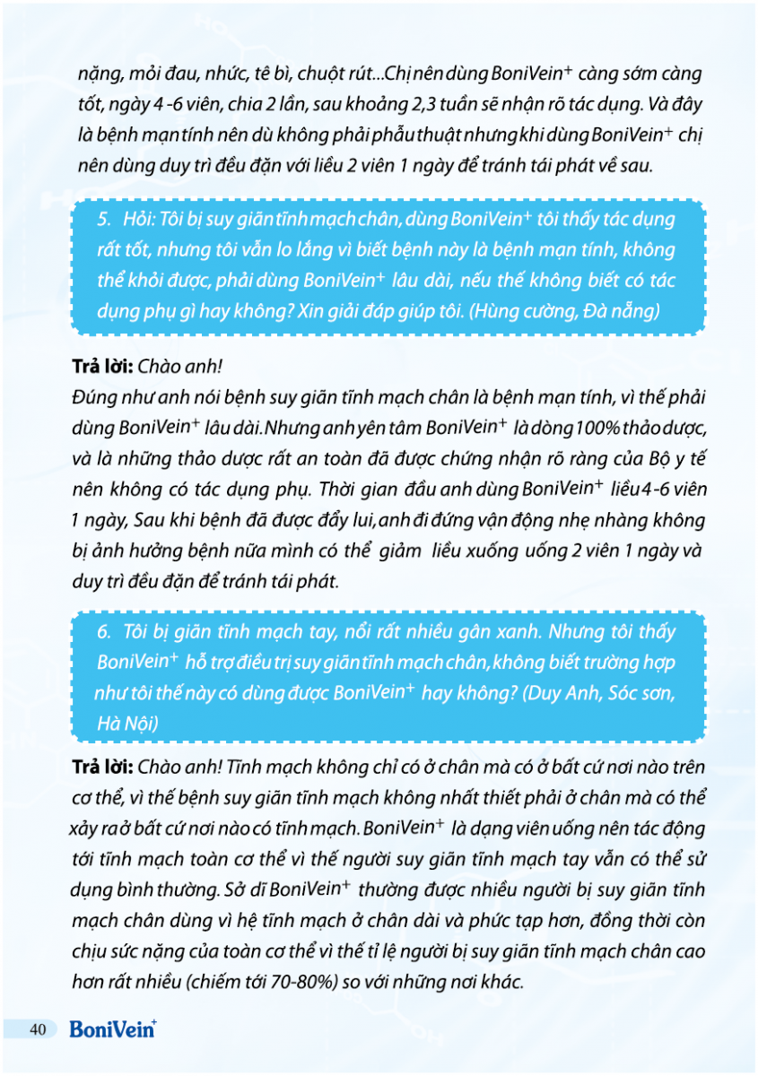 Hỏi: Tôi bị suy tĩnh mạch tay, có dùng được BoniVein hay không?