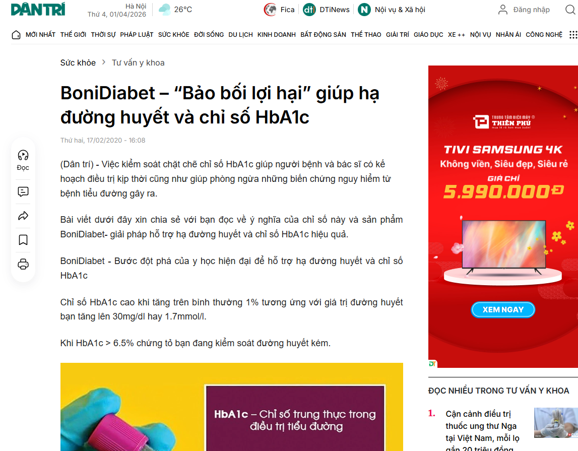 BÁO CHÍ ĐƯA TIN VỀ BONIDIABET+